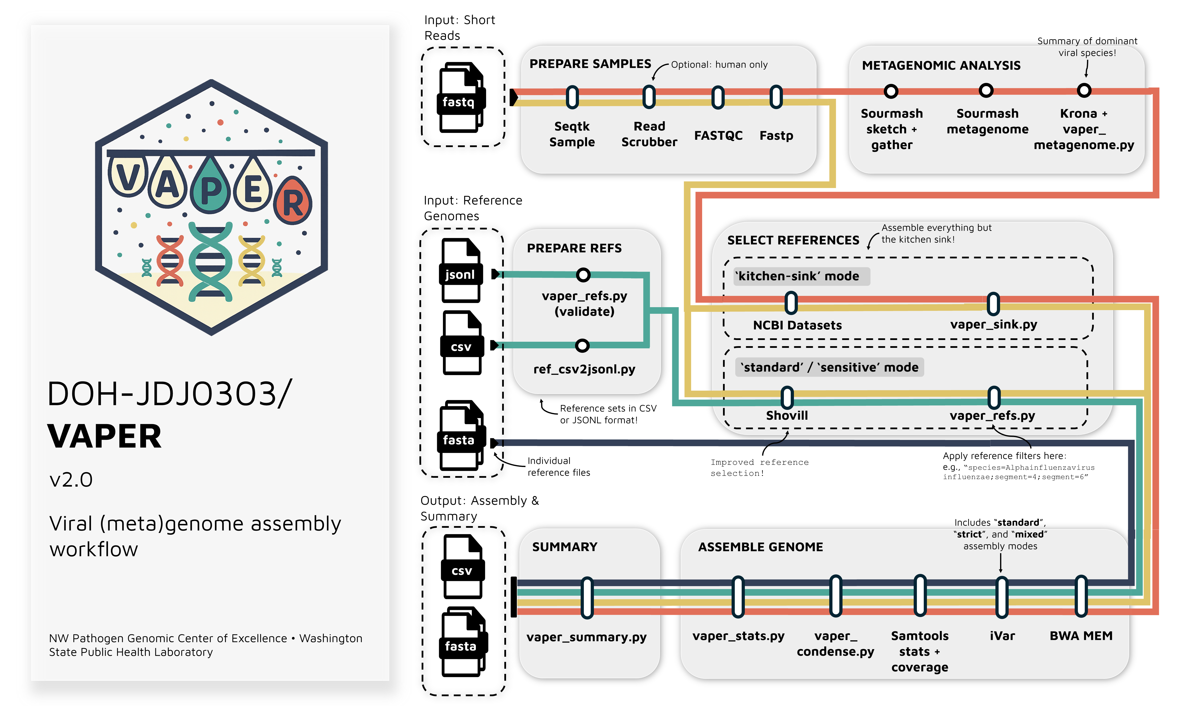 VAPER was originally created by the Washington State Department of Health (WA DOH) as part of the Pathogen Genomics Center of Excellence (PGCoE). Check out the links below to learn more: